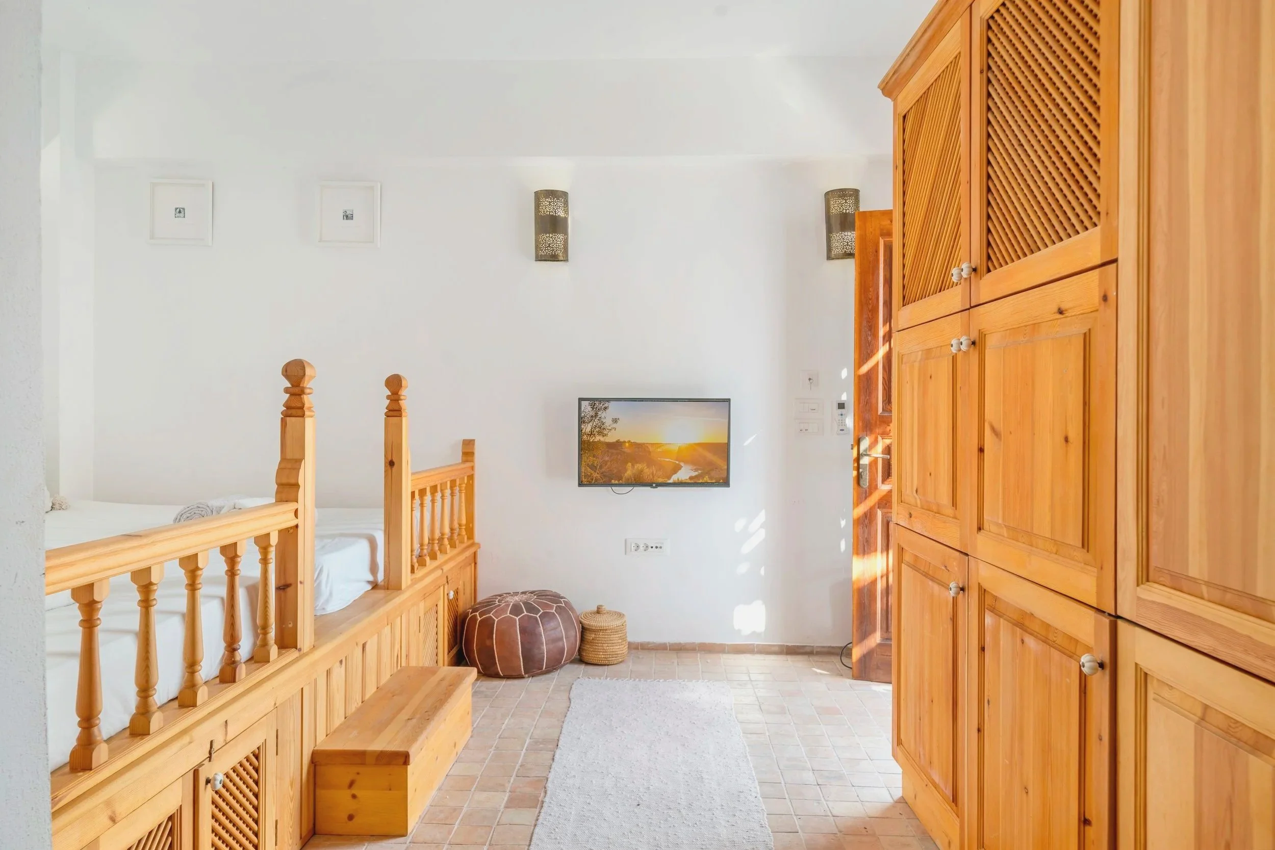 Part of a charming two-villa property in the heart of Lindos, this spacious villa is ideal for families or groups of up to four guests. Blending traditional Greek design with modern comforts, it features a custom-built banga bed frame with two queen-size mattresses in an open-plan layout. The fully equipped kitchen includes a fridge, freezer, oven, dishwasher, washing machine, and all essential utensils. The bathroom offers a shower, toilet, and sink. Guests also enjoy air conditioning, a secure safe, complimentary Wi-Fi, coffee, soap, and storage space. Outside, relax in the shared courtyard under a bamboo-shaded pergola with a table for four, ambient lighting, and a shared drying rack.