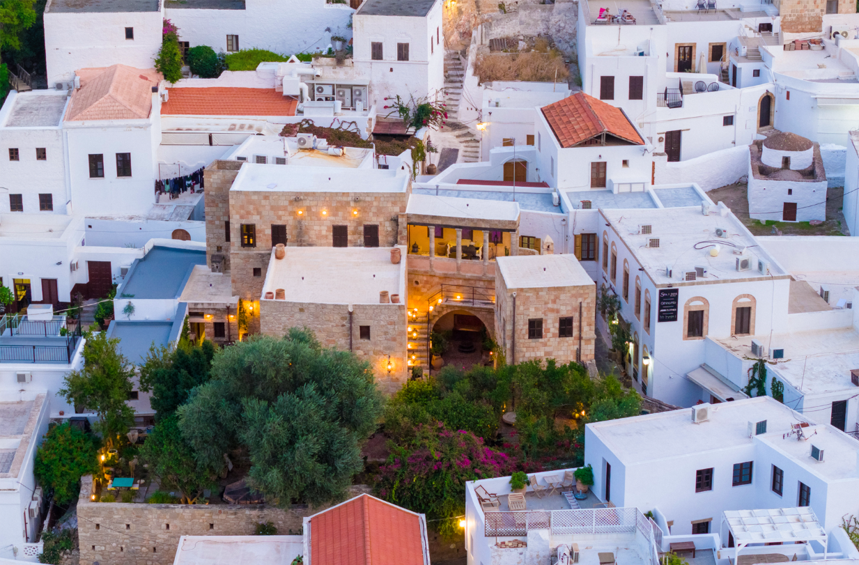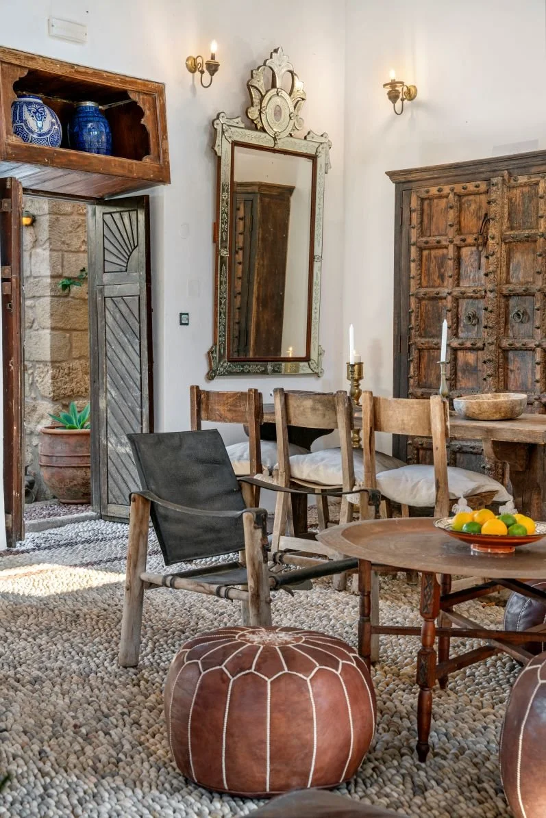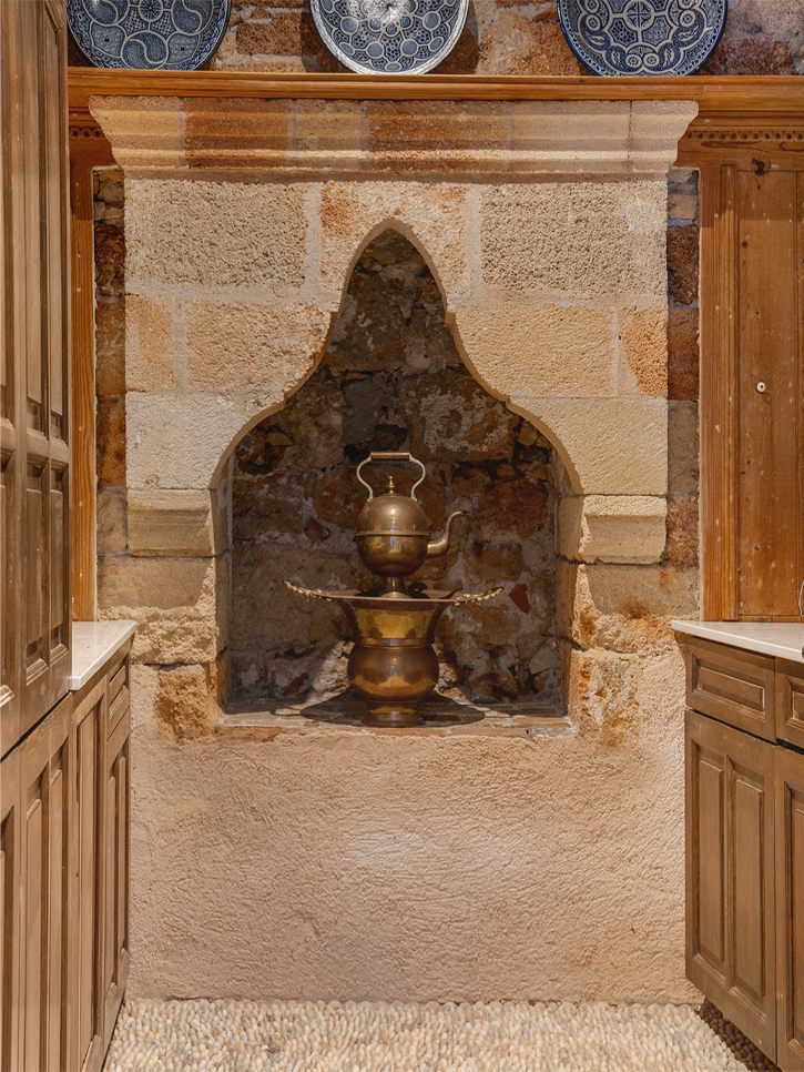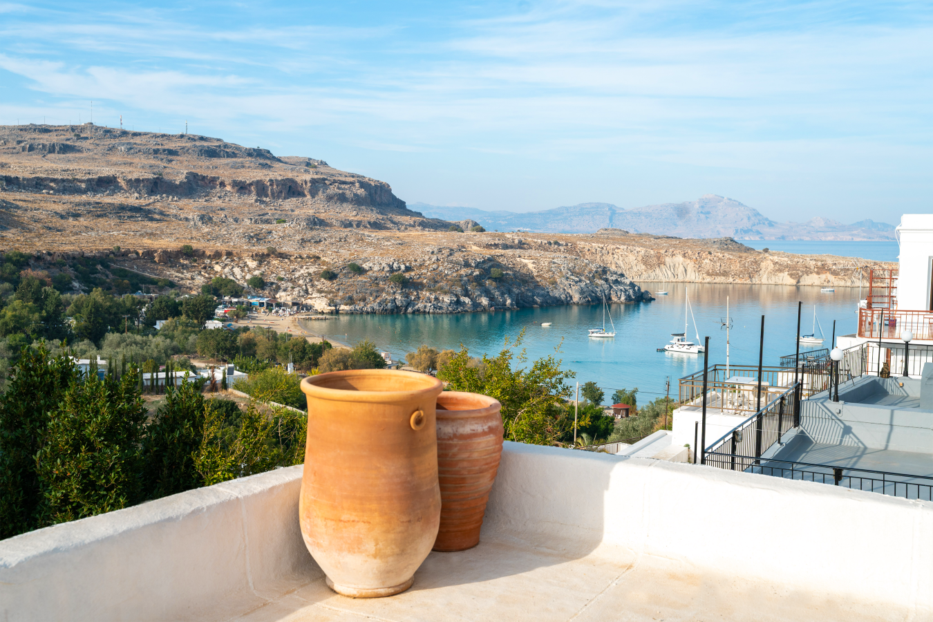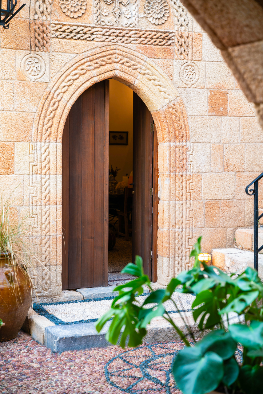 Positioned on the upper level of Vasilikos Mansion, Suite Two offers a bright and spacious retreat accommodating up to five guests across two separate bedrooms, with views stretching toward the beach and the whitewashed rooftops of Lindos. Elevated within the historic house, the suite enjoys an airy atmosphere shaped by traditional timber ceilings, natural light, and the calm rhythm of village life below.